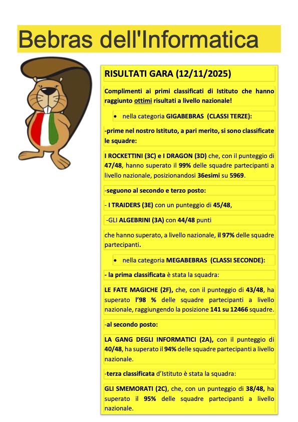 Il 12 Novembre 2025 si è svolto, nel nostro Istituto, presso la secondaria di I grado Pirotta, il Bebras dell’Informatica, in concomitanza con le analoghe edizioni nel resto del mondo. L’edizione italiana è curata dal Laboratorio ALADDIN del Dipartimento di Informatica dell’Università degli Studi di Milano.