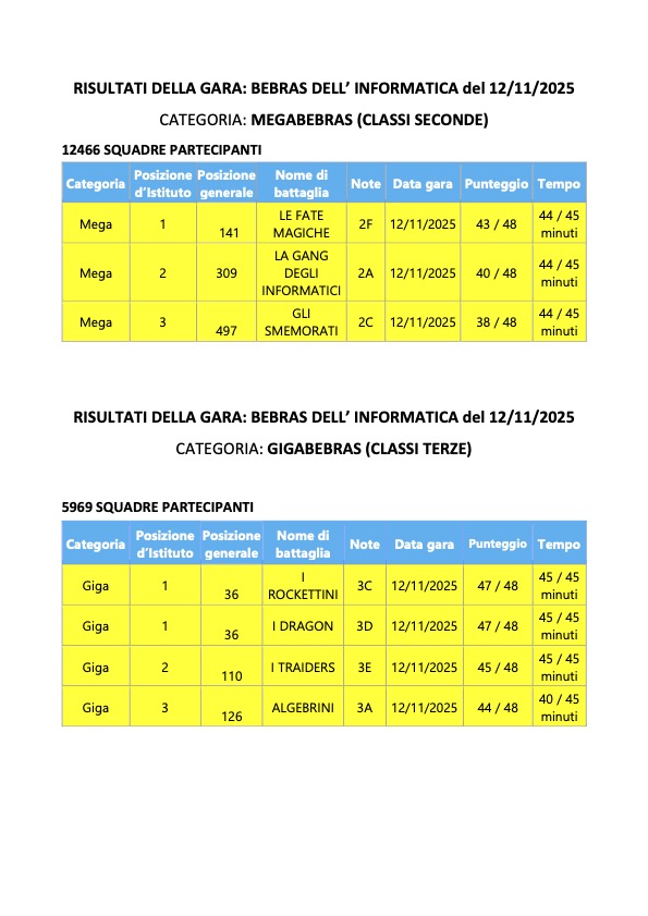-12 squadre delle classi seconde (MEGA-Bebras);